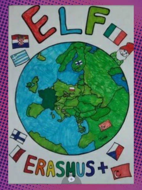 Oto zwycięski plakat promujący nasz projekt "ELF" wykonany przez uczniów z Finlandii. Kolejny raz udało nam się wytypować zwycięzcę. Większość uczniów z naszej szkoły głosowała właśnie na fińską pracę.