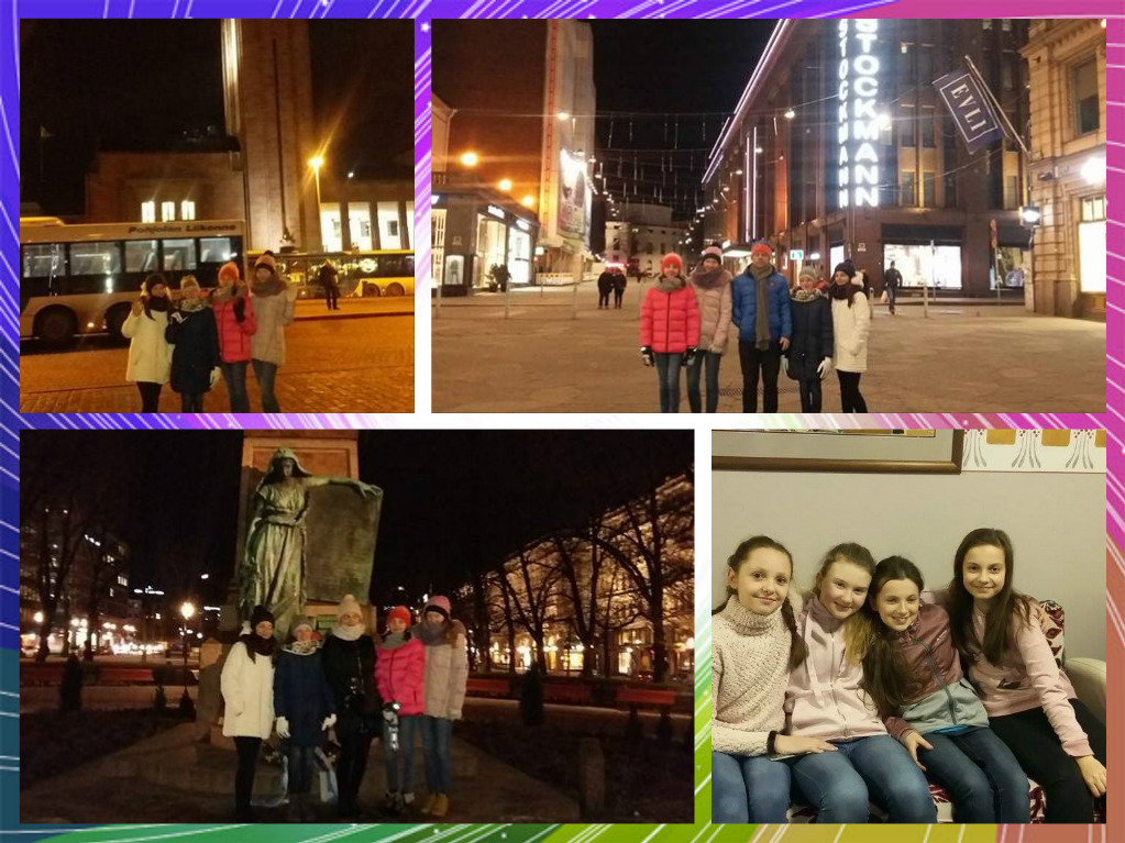 Ela, Natalka, Ola, i Weronika wraz z opiekunami: p. Eweliną Łuniewską i p. Tomaszem Piórkowskim są już w Helsinkach. Podróż upłynęła im bardzo szybko, bez żadnych problemów. Po zameldowaniu się w hotelu cały zespół udał się na spacer po stolicy. Pogoda dopisała - jest troszkę cieplej niż w Zambrowie, a każdy spodziewał się tęgich mrozów.